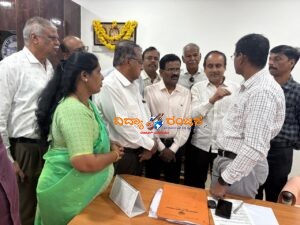 ತುಮಕೂರು: ನಗರದ ಡಾ.ಬಾಲಗಂಗಾಧರನಾಥ ಸ್ವಾಮೀಜಿಗಳ ವೃತ್ತದಲ್ಲಿ ತೆರವುಗೊಳಿಸಿರುವ ಸ್ವಾಮೀಜಿಗಳ ನಾಮಫಲಕವನ್ನು ಮರು ಸ್ಥಾಪನೆ ಮಾಡಬೇಕು ಎಂದು ಜಿಲ್ಲಾ ಒಕ್ಕಲಿಗರ ಒಕ್ಕೂಟದ ಮುಖಂಡರು ನಗರಪಾಲಿಕೆ ಆಯುಕ್ತ ಯೋಗಾನಂದ್ ಅವರನ್ನು ಭೇಟಿ ಮಾಡಿ ಮನವಿಪತ್ರ ಸಲ್ಲಿಸಿದರು.